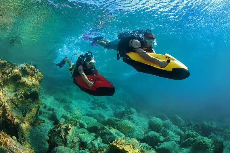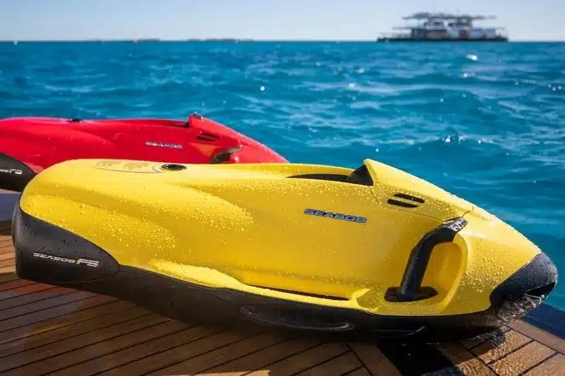 The Seabob is an electric water toy that allows effortless diving and snorkeling. Equipped with advanced technology, it’s easy to use, environmentally friendly, and completely silent, making it the ideal choice for those who want to enjoy the sea without disturbing the natural surroundings. With adjustable speeds, you can use it for a relaxed ride or an exciting adventure.
